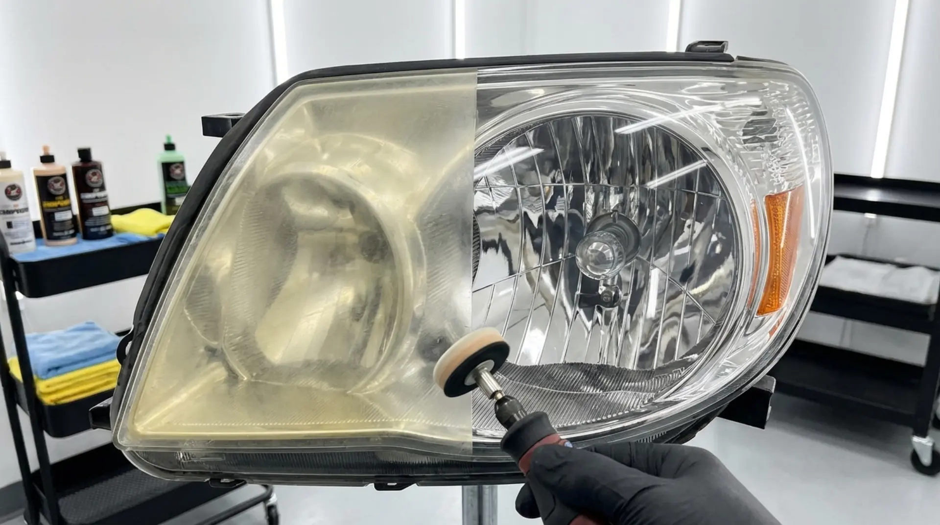 Professional compounds and techniques bring back near-original clarity to yellowed, hazy lenses.
